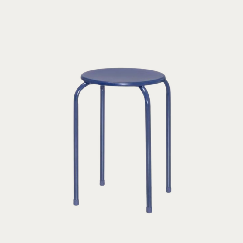Monikäyttöinen pinottava teräsjakkara toimii myös sivupöytänä yksin tai ryhmänä. Enimmäiskantavuus 100 kg.