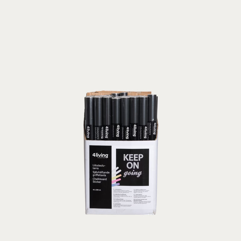 Liitutaulutarran voit leikata haluttuun kokoon ja muotoon. Hauska lisä sisustamiseen ja askarteluun. Sisältää 5 väriliitua: sininen, punainen, keltainen ja 2 kpl valkoinen.