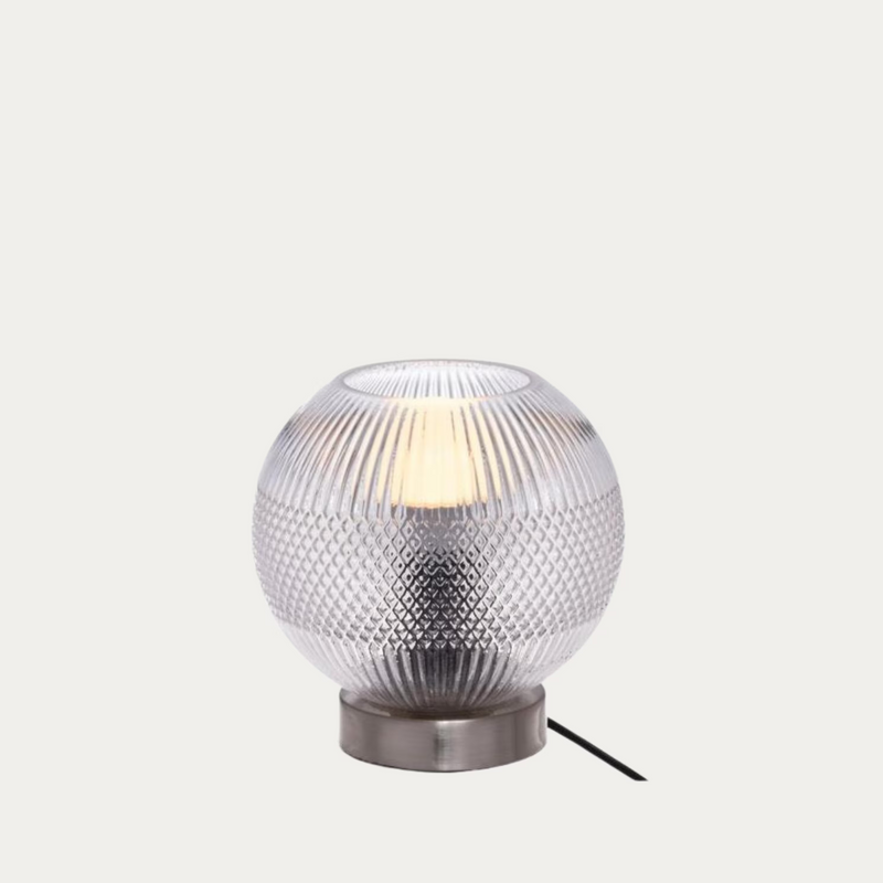 Ball pöytävalaisimessa yhdistyvät kaunis koristeellinen kirkas lasikupu ja tyylikäs teräksinen jalusta. Valonlähteeksi sopii E27, max 25W (ei sisälly). Liitosjohdon pituus 1,5 m.
