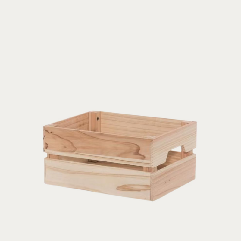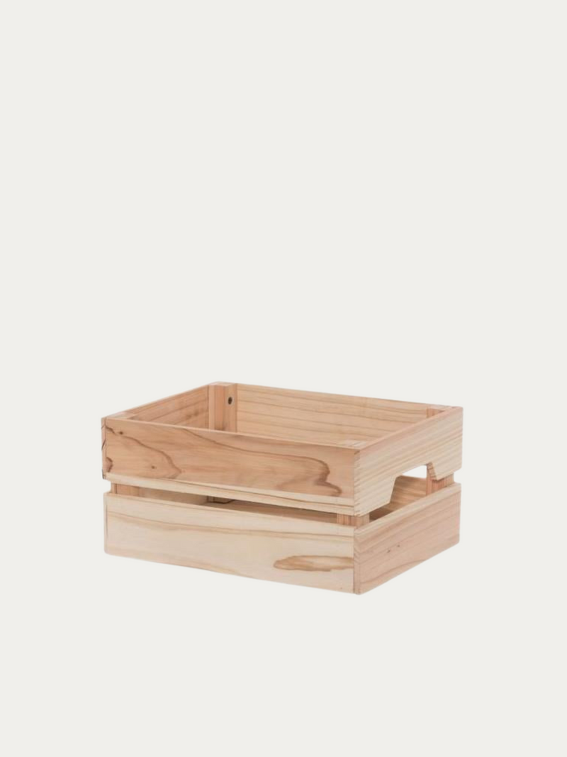 Kätevä puulaatikko saatavilla kahdessa koossa kodin järjestely- ja säilytystarpeisiin. Kädensijojen ansiosta helppo ottaa esiin ja nostaa. Valmistettu käsittelemättömästä puusta.
