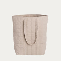 Tyylikäs tikattu kangaskori soveltuu esimerkiksi vierastyynyjen, vilttien ja peittojen säilyttämiseen ja järjestyksen ylläpitoon. Pitkien kantohihnojen ansiosta koria on myös helppo kantaa, joten siirtäminen paikasta toiseen on vaivatonta. Kantohihnojen pituus 74 cm. Väri vaalea beige. Koko 36 x 23 x 52 cm. Materiaali 100 % polyesteri. Pintapesu kostealla liinalla.