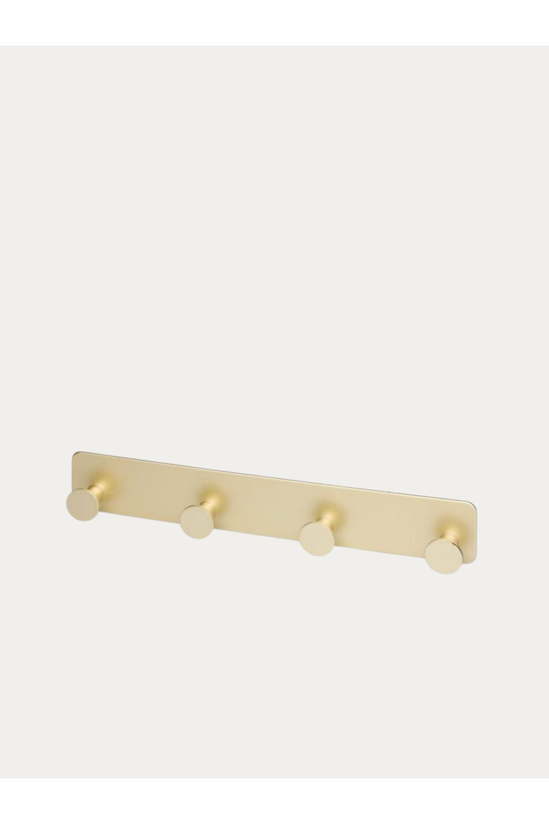 Kullanvärinen metallinen naulakko neljällä koukulla. Tuotteen mukana toimitetaan 3M kiinnitysteippi ja ruuvit, valitse oikea kiinnitystapa seinämateriaalin mukaan. Jauhemaalattu metallipinta. Enimmäiskuormitus 2,5 kg.