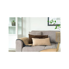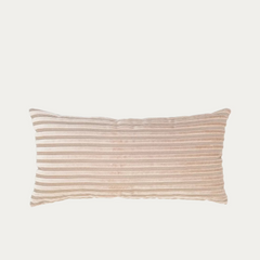 Tuo pehmeyttä ja hienostunutta ilmettä sisustukseen tällä tyylikkäällä raidallisella koristetyynyllä. Tyynyn samettimainen pinta heijastaa valoa kauniisti ja tuo pintaan elävyyttä. Hillitty beigen sävy ja vaakaraidoitus tekevät siitä helposti yhdisteltävän niin neutraaliin kuin värikkäämpäänkin sisustukseen. Täydellinen lisä sohvalle, nojatuoliin tai sängylle tuomaan kodikkuutta ja viimeisteltyä ilmettä. Koko 30 x 60 cm. Materiaali polyesteria.
