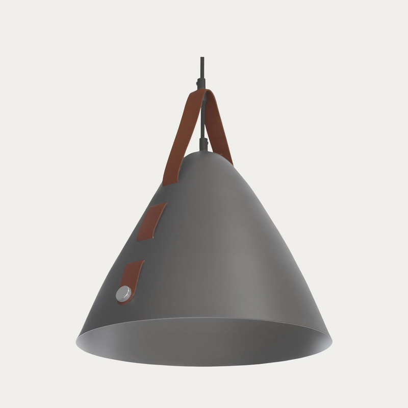 Tyylikäs metallinen riippuvalaisin, jota täydentävät hienostuneet nahkasomisteet. Valaisin tuo näyttävyyttä ruokailutilaan ja toimii loistavasti sekä kodeissa että julkisissa tiloissa. Elegantti muotoilu ja laadukkaat materiaalit tekevät siitä sekä käytännöllisen että sisustuksellisen valinnan.