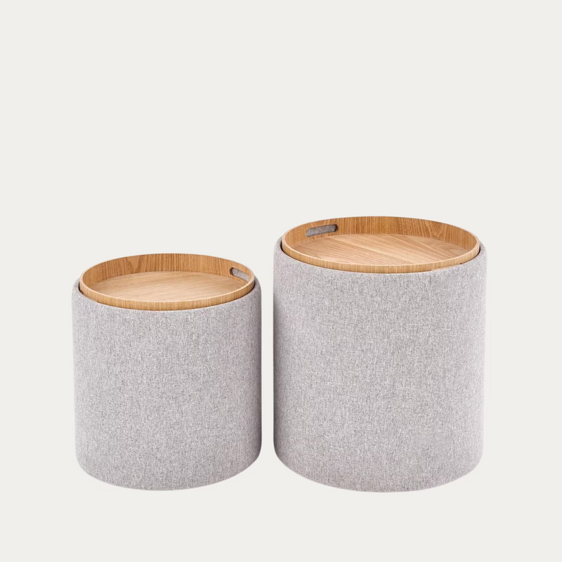 Hillitty harmaa kangas yhdistettynä luonnolliseen puunsävyyn tekee rahista ajattoman sisustuselementin, joka sopii niin olohuoneeseen, makuuhuoneeseen kuin eteiseenkin.