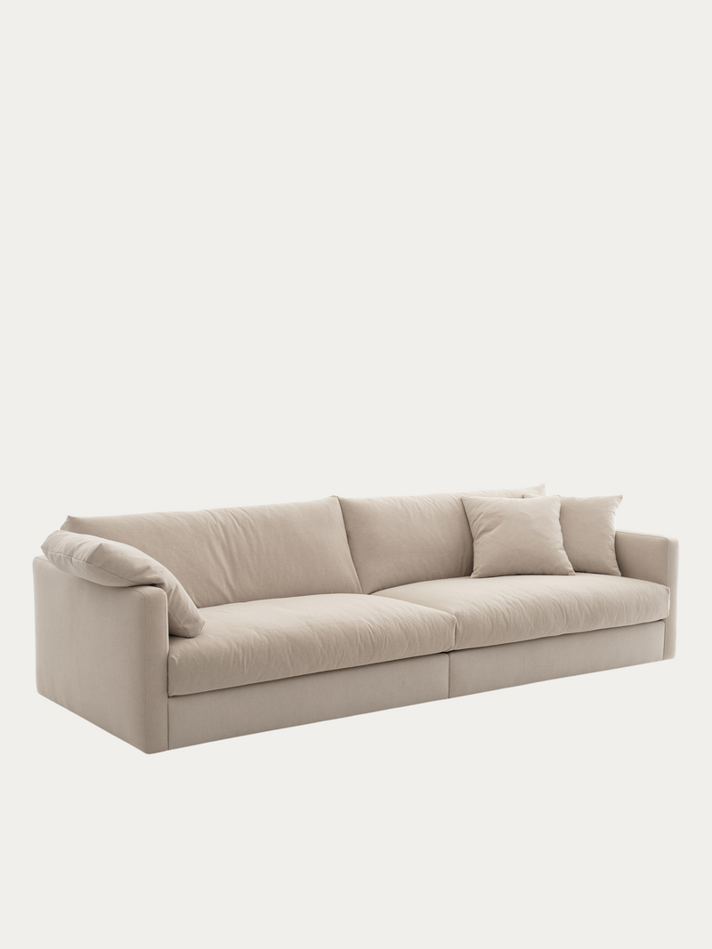 Tämä ylellinen löhöilysohva on suunniteltu niille, jotka haluavat uppoutua pehmeyteen ja nauttia rennosta oleilusta – yksin, yhdessä tai koko perheen voimin. Erittäin suuri istuinsyvyys tarjoaa runsaasti tilaa käpertyä tai loikoilla juuri niin kuin haluat.
