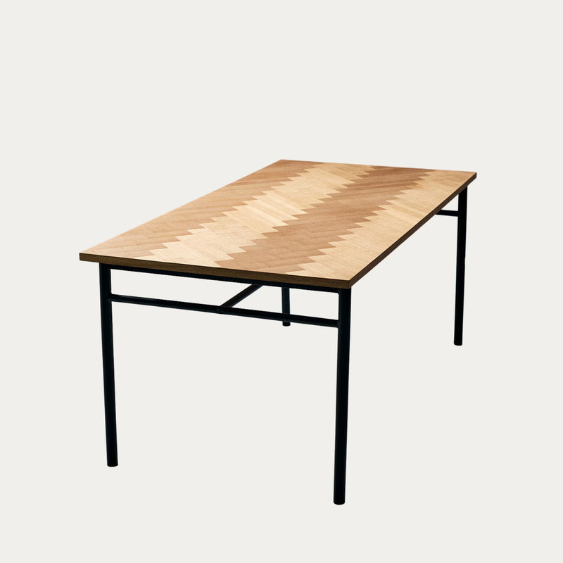 Casetti-ruokapöytä yhdistää näyttävän muotoilun ja keveyden tyylikkäästi. Puunsävyinen kansi ja sirot metallijalat tuovat ilmeeseen modernia kontrastia, kun taas kannen kalanruotomainen kuviointi lisää pöytään kiinnostavaa tekstuuria. Casetti ottaa tilan haltuun olematta raskas – täydellinen valinta niin ruokailutilan keskipisteeksi kuin tunnelmanluojaksi.