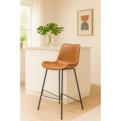 Chic baarituoli tarjoaa miellyttävän istumakokemuksen konjakinvärisellä istuinosalla ja tukevalla mustalla metallijalustalla. Sen muotoilu istuu monenlaisiin tiloihin, kuten keittiöön tai koti- tai ravintolabaarille.