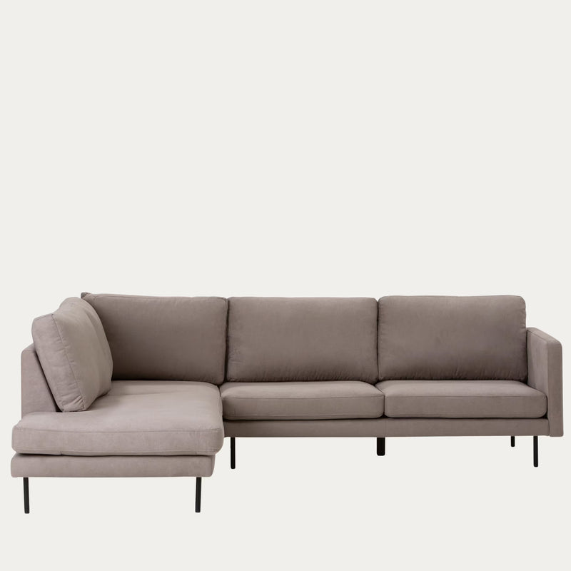 Copenhagen avokulmasohva tarjoaa tyylikkään ja ajattoman ilmeen greige -sävyisenä, joka sopii monenlaiseen sisustukseen. Sen miellyttävän tuntuinen verhoilu ja runsaat pehmusteet tekevät sohvasta täydellisen paikan rentoutua – oli kyseessä sitten kiireetön viikonloppuaamu tai ilta hyvän sarjan parissa.