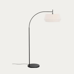Dicte-lattiavalaisin hurmaa pehmeästi laskostetulla, käsintehdyllä kangasvarjostimellaan, joka luo tilaan lämpimän ja kodikkaan tunnelman. Suurikokoinen puuvillavarjostin suodattaa valon miellyttävästi ja roikkuu kevyesti kaarevasta rungosta, joka kaartuu täydellisesti nojatuolin tai sohvapöydän ylle.