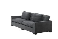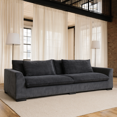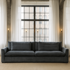 Tämä syvä ja erityisen pehmeä sohva on täydellinen paikka rentoutua pitkän päivän jälkeen. Sen muhkeat istuintyynyt ja leveät käsinojat kutsuvat istahtamaan – ja jäämään. Tummanharmaa sävy tuo sisustukseen rauhallista eleganssia, joka sopii niin moderniin kuin klassisempaan kotiin.