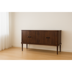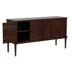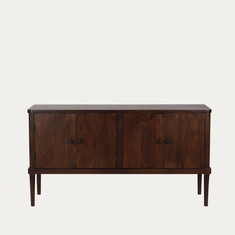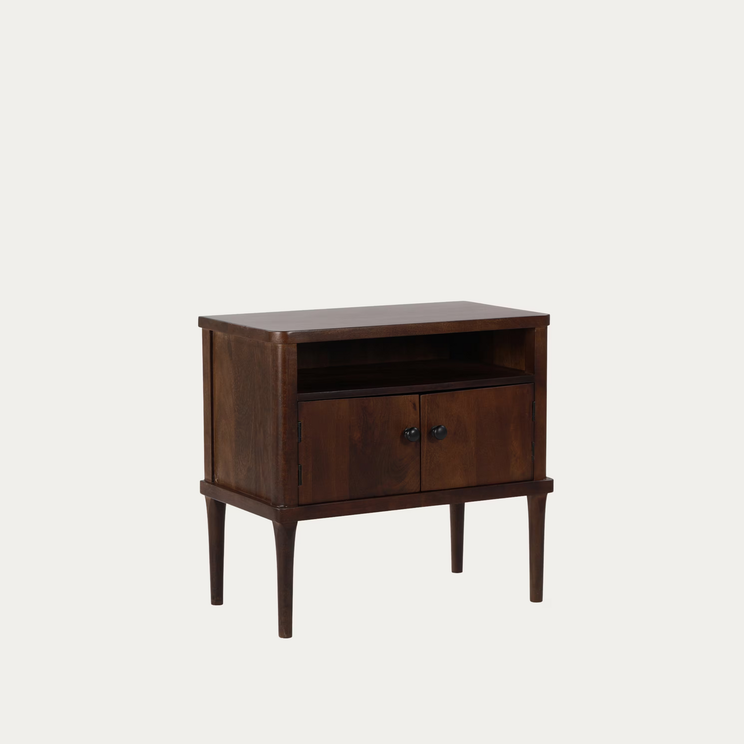 Retrohenkinen ByNiemen Durham senkki on valmistettu kestävästä mangopuusta, jonka syvä tummanruskea sävy tuo sisustukseen lämpöä ja luonnetta. Massiivipuinen rakenne takaa ovikaapin ajattoman ilmeen ja pitkän käyttöiän.