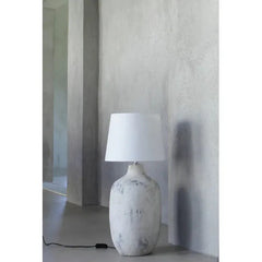 Valkoinen patinoitu Alesso-pöytävalaisin yhdistää ajattoman eleganssin ja modernin ilmeen. Sen pehmeä, kuluneen näköinen viimeistely luo lämpimän ja kutsuvan tunnelman, tehden valaisimesta erinomaisen valinnan työpöydälle, yöpöydälle tai olohuoneeseen.