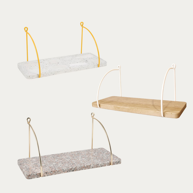 Tuo kotiisi ripaus luksusta ja keveyttä näillä siroilla hyllyillä, jotka yhdistävät laadukkaat materiaalit ja minimalistisen muotoilun. Hyllylevy on valmistettu kauniista marmori- tai graniittipinnasta, joka kestää aikaa ja katseita. Metalliset kannattimet tuovat rakenteeseen tukevuutta ja modernia ilmettä.