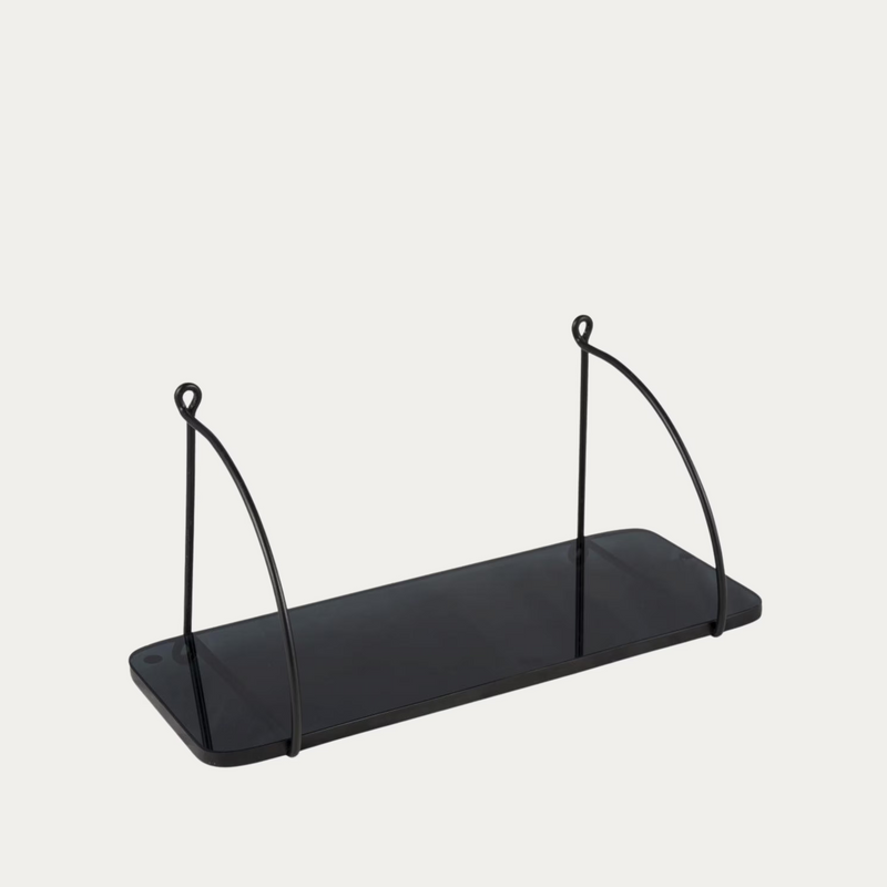 Rauhallisen tyylikäs musta lasihylly tuo komean kontrastin sisustukseesi