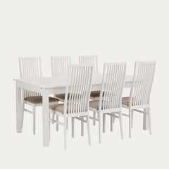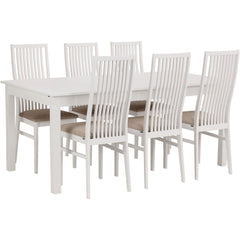 Sisältää: Jatkettava ruokapöytä + 6 tuolia
