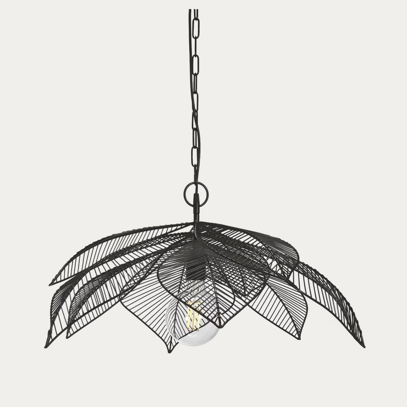 Onko koittanut aika kokeilla jotain aivan uutta kodin valaistuksessa? Tämä roikkuva valaisin, jonka inspiraation lähteenä on jalavanlehdet, on näyttävä sisustuselementti, jota ei löydy joka vastaantulijalta. Kattovalaisimen muotokieli on hempeä, mutta musta väritys tuo ulkomuotoon särmikkyyttä.