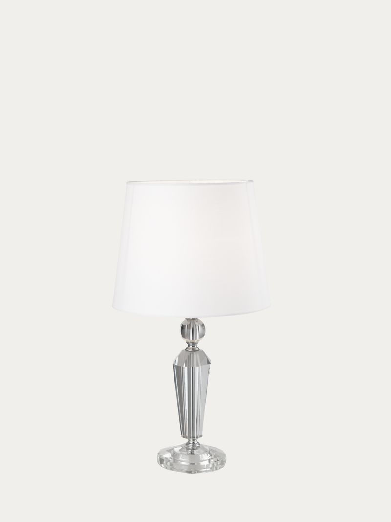 Elsa pöytävalaisin Sessakilta tuo valoa ja tyyliä. Se on kirkas hopeansävyinen jalka ja valkoinen varjostin antavat elegantin ja raikkaan ilmeen.