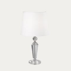 Elsa pöytävalaisin on Sessakin valmistama valaisin, joka sopii monenlaisiin sisustuksiin. Sen kirkkaan hopeansävyinen jalka ja valkoinen varjostin muodostavat raikkaan ja harmonisen kokonaisuuden.