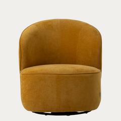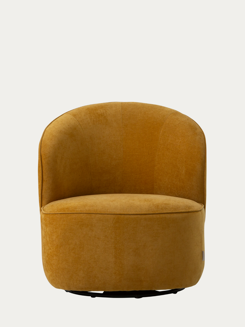 Emma-lepotuolissa yhdistyvät kirkas keltainen sävy ja pyöreät, pehmeät muodot, jotka luovat kodikkaan ja kutsuvan tunnelman mihin tahansa huoneeseen.