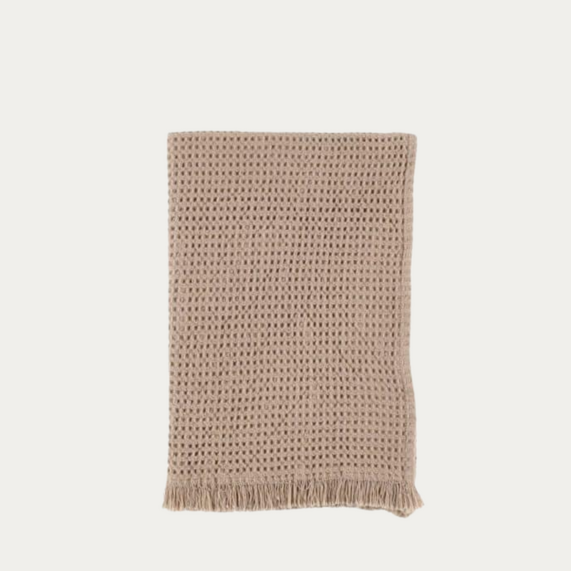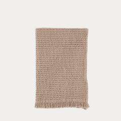Fanni K Ruutu käsipyyhe on valmistettu kierrätetystä vohvelisidoksesta. Hapsureunat lyhyillä sivuilla. Ripustuslenkki pitkällä sivulla. Koko 50x70 cm. Materiaali 100 % kierrätyspuuvilla.