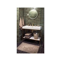 Reilunkokoinen ja paksu Kimmel kylpyhuoneenmatto tuo pehmeyttä kylpyhuoneeseen. Mattoa voi käyttää molemmin puolin ja sen päälle on miellyttävä astua. Materiaali 100% puuvilla. Värit agavenvihreä ja hiekka. Koko 60 x 90 cm. Pesu 40 asteessa. Tuotteella on Ökotex-sertifikaatti, mikä tarkoittaa että tuote on turvallinen eikä se sisällä haitallisia kemikaaleja.