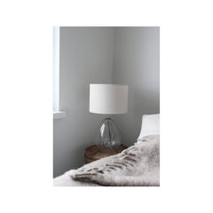 Fanni K:n Runo on kirkas lasinen lampunjalka, jolla on pisaran muoto ja teksturoitu pinta. Tekstuuri lisää lampunjalalle visuaalista mielenkiintoa. Messinginvärinen kiinnike lampulle. Koko 21 x 35 cm. 220-240V ~50Hz, E27, Max 40W, Class II. Johdon pituus 2,5 m. Välikytkin.