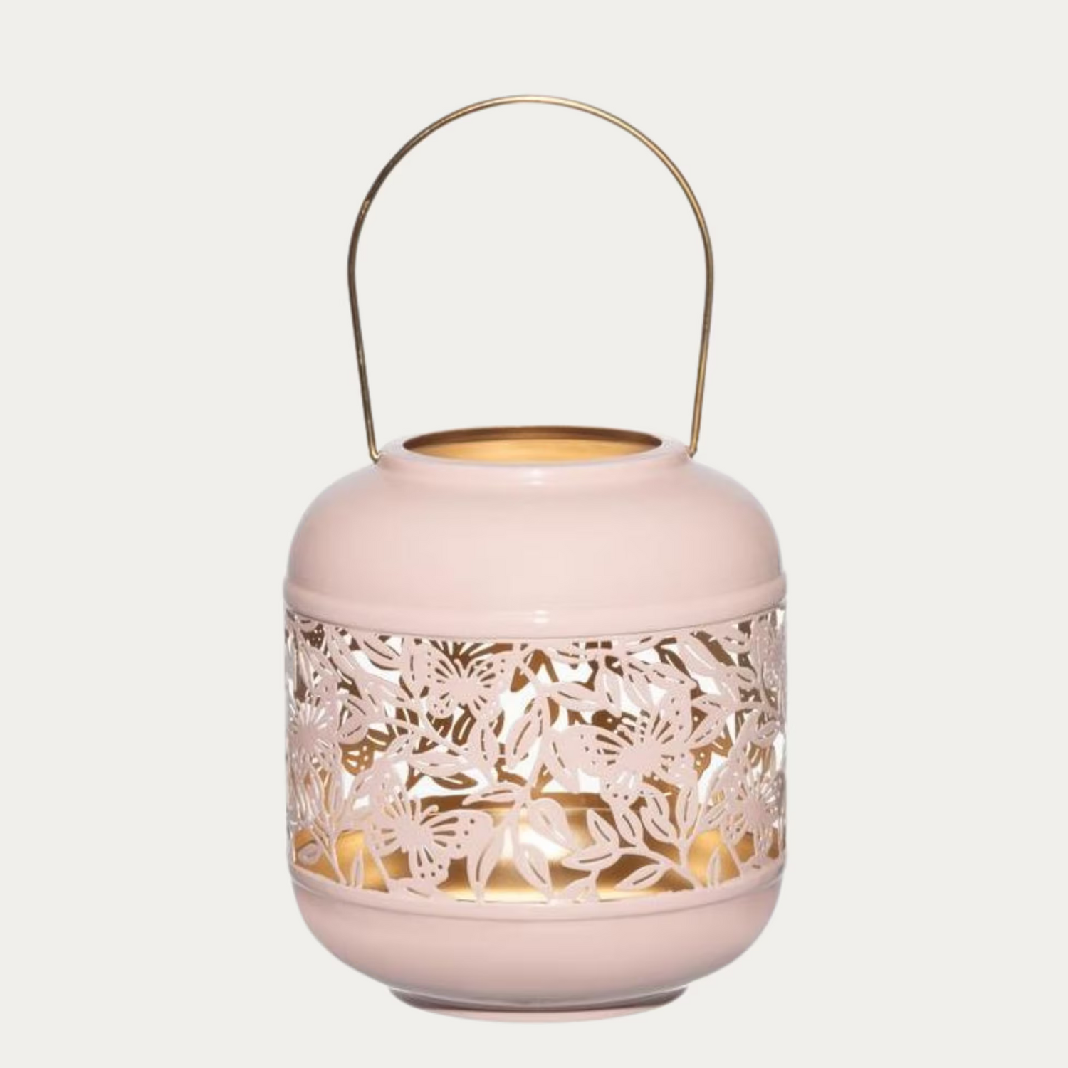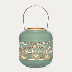 Fanni K:n Säde-lyhty on kauniisti koristeleikattu metallilyhty. Koristeleikkauksen kuva-aiheena ovat perhoset ja kasvit, jotka luovat lumoavia valon ja varjon leikkejä. Lyhdyn sisäosa on kullanvärinen. Säde-lyhty sopii täydellisesti lämpimän ja kutsuvan ilmapiirin luomiseen riippumatta siitä, ripustatko sen vai asetatko sen pöydälle. Se sopii perinteisille kynttilöille, LED-kynttilöille ja paristokäyttöisille koristevaloille. Koko 20 x 24 x 22 cm.