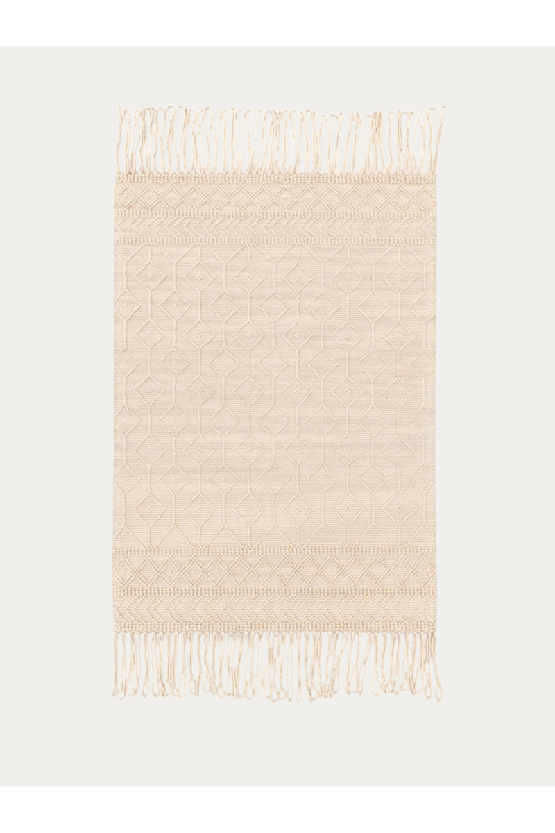 Lupaus-matto tuo kotiisi pehmeän harmonian ja kauniin käsityön hengen. Tämä vaalea, luonnonsävyinen matto on kudottu geometrisella kuviolla, jota täydentävät tyylikkäät hapsut molemmissa päissä. Hillitty mutta yksityiskohtainen muotoilu tekee siitä täydellisen valinnan skandinaaviseen, boheemiin tai luonnonläheiseen sisustukseen.
