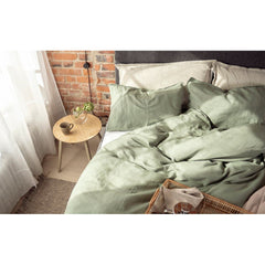 Yksivärinen pussilakanasetti pehmeästä ja ihoa vasten miellyttävästä pellavasekoite-materiaalista.Tyynyliina 50x60 cm ja pussilakana 150x210 cm. Kaksoistikkaus reunoilla. Materiaali 30% pellava, 70% puuvilla. Värit beige ja vihreä. Vesipesu 60 astetta. Tuotteella on Ökotex-sertifikaatti, mikä tarkoittaa että tuote on turvallinen eikä se sisällä haitallisia kemikaaleja.
