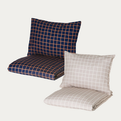 Ruutukuosinen pussilakanasetti laadukasta perkaalipuuvillaa, lankaluku 200. Perkaalikangas on sileää ja se pysyy kauniina pitkään. Perkaalikangas kiiltää himmeästi ja tuntuu ihoa vasten viileältä. Pakkaus sisältää pussilakanan 150 x 210 cm ja tyynyliinan 50 x 60 cm. Kaksoistikkaus reunoilla. Pussilakanassa on käsiaukot helpottamassa peiton asettamista. Värit valkoinen-beige ja sininen-ruskea. Pesu 60 asteessa. Pese ennen käyttöä. Tuotteella on Ökotex-sertifikaatti, mikä tarkoittaa että tuote on turvallinen eikä se sisällä haitallisia kemikaaleja. Design Anna Säteri.