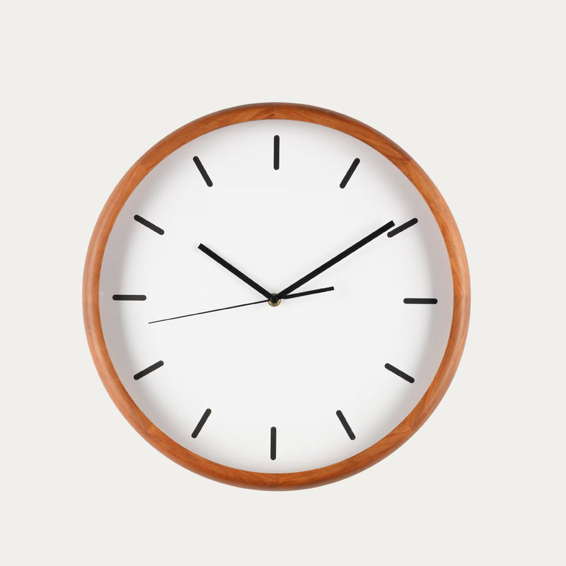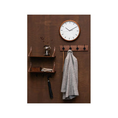 Pelkistetyn tyylikäs seinäkello. Kehys on valmistettu männystä. Hiljainen koneisto. Paristo 1 x AA 1,5 V (ei sisälly).