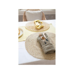 Fanni K Rauha-pöytätabletti on valmistettu juutista, joka on ympäristöystävällinen ja kestävä valinta, sillä se on biologisesti hajoava ja uusiutuva materiaali. Materiaali 100 % juutti. Tahrojen puhdistaminen kostealla liinalla, vältä hankaamista.