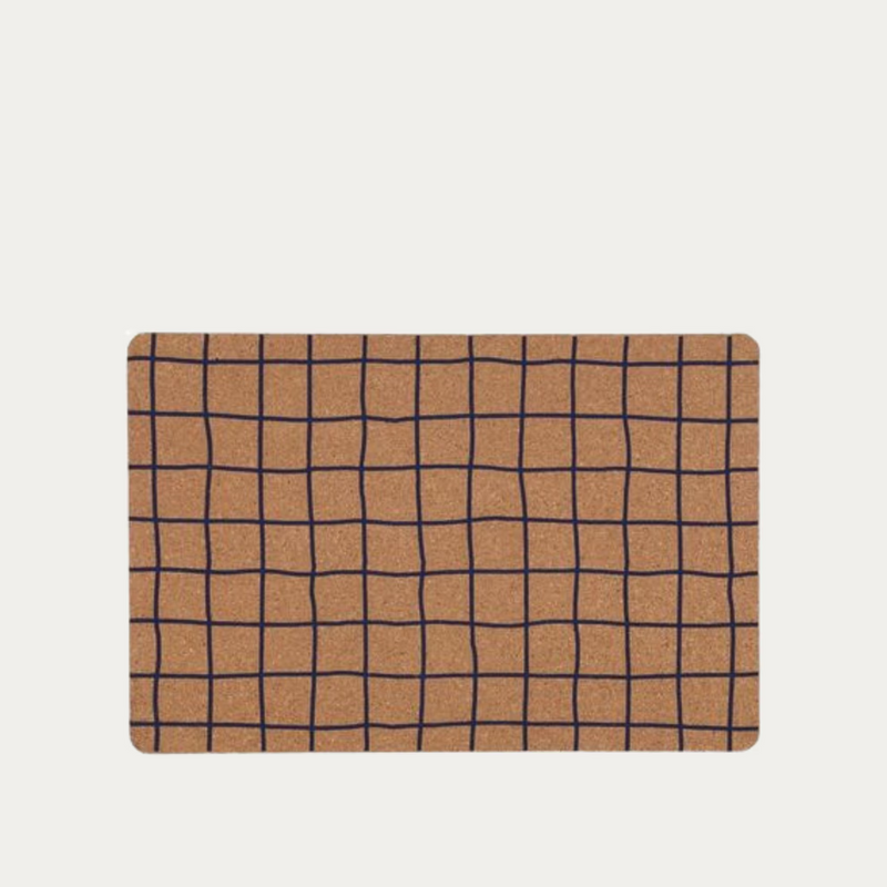 Fanni K Ruut pöytätabletissa on sininen ruutukuvio ja se on valmistettu korkista, joka on kierrätettävä luonnonmateriaali. Pöytätabletit suojaavat pöydän pintaa roiskeilta ja naarmuilta. Koko 30 x 45 cm. Tahrojen puhdistus kostealla liinalla.