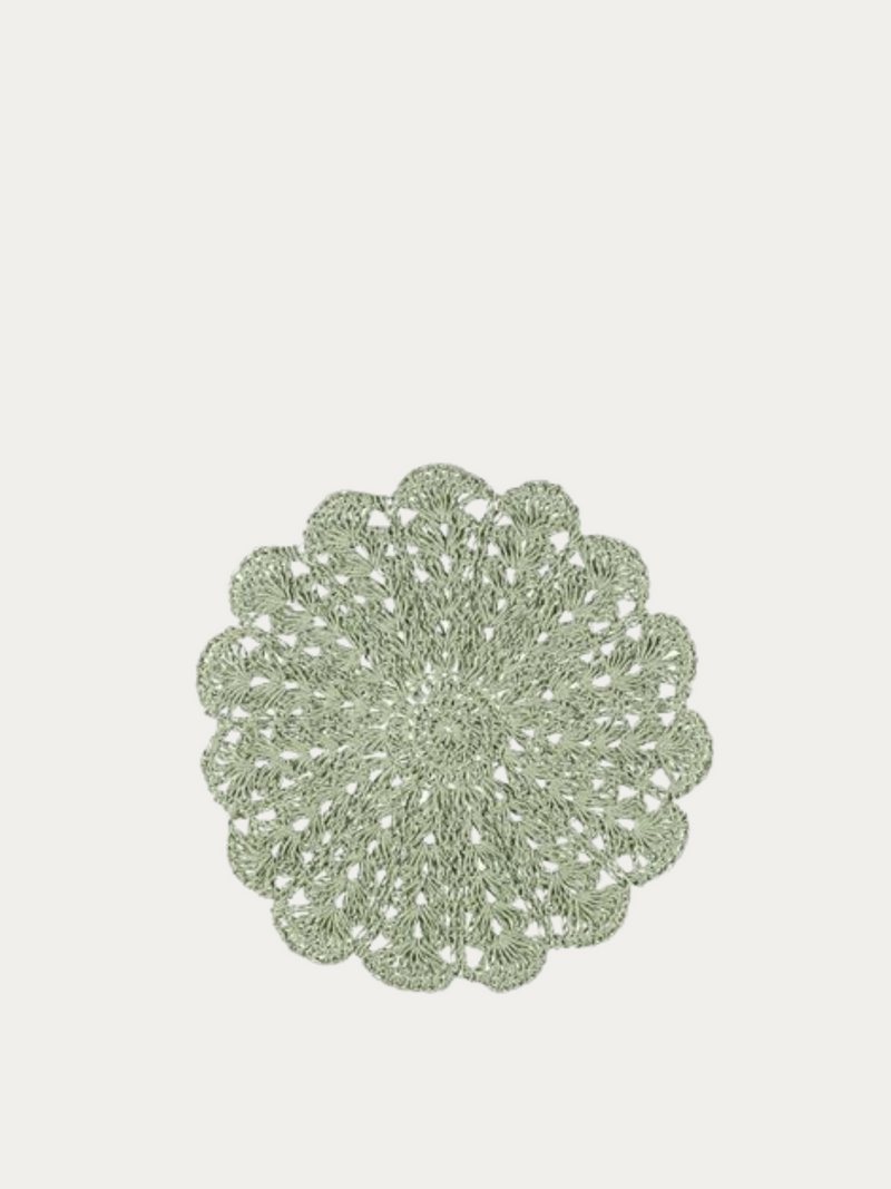 Paperinarusta valmistettu pöytätabletti. Halkaisija 38 cm. Materiaali paperinaru. Puhdistus kostealla liinalla, vältä hankaamista.