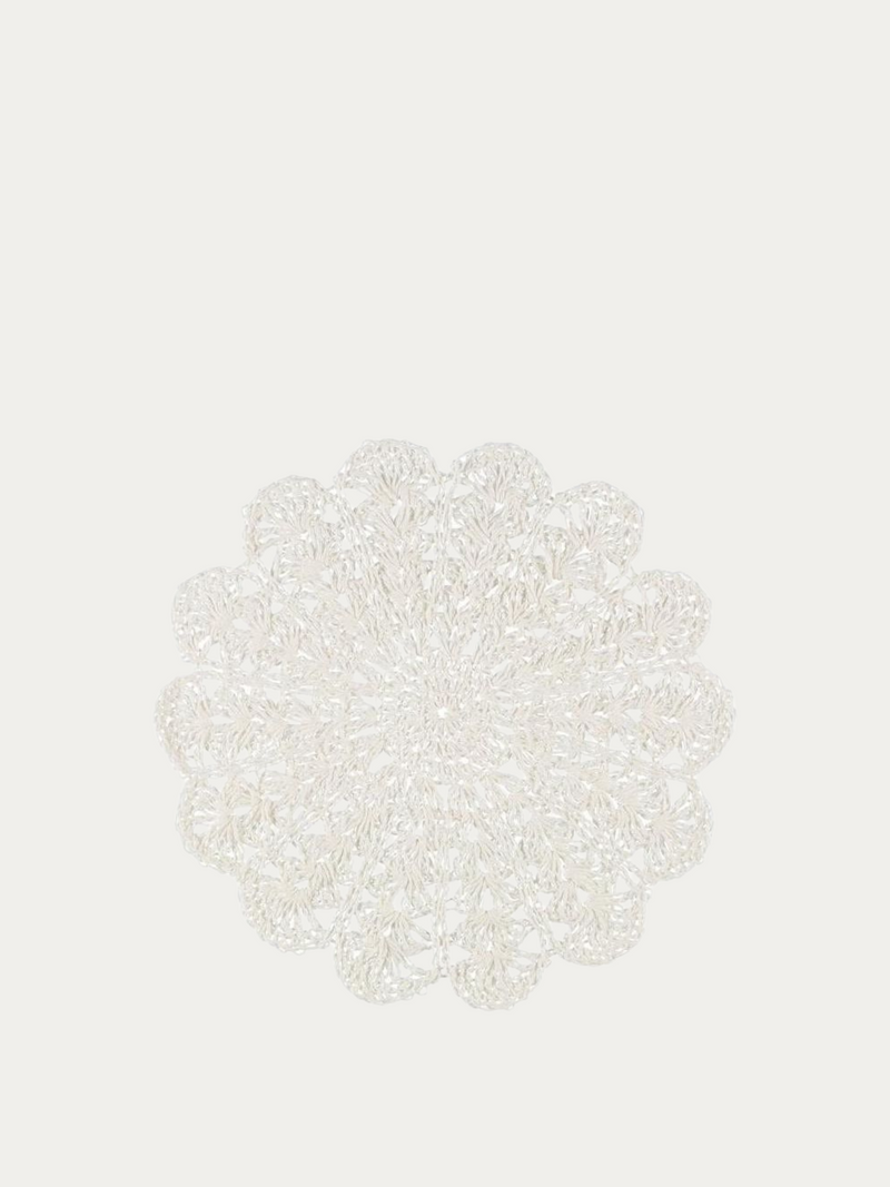 Paperinarusta valmistettu pöytätabletti. Halkaisija 38 cm. Materiaali paperinaru. Puhdistus kostealla liinalla, vältä hankaamista.