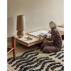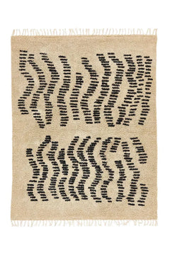 Suomalaisen palkitun muotoilijapariskunnan Saanan ja Ollin suunnittelemassa Dyyni -matossa maanläheinen lämpimän hiekan sävy kohtaa vapaamuotoisen mustan aaltokuvion. Käytännöllinen pehmeä lyhytnukkainen matto on valmistettu vastuullisesti kierrätetystä puuvillasta, joka tekee matosta vastuullisen valinnan. Dyyni on suunniteltu kestämään aikaa ja elämää niin materiaalinsa kuin muotoilunsa puolesta ja toimii niin mattona kuin seinätekstiilinä. Puuvillainen matto on vesipestävä.