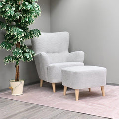 Helmi rahi tarjoaa käytännöllisen ja mukavan lisäistuimen tai jalkatuen eri huoneisiin. Sen harmaa verhoilu on hillitty ja helppo yhdistää moneen sisustustyyliin, ja vaaleat puujalat tuovat raikkaan kontrastin.