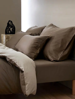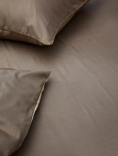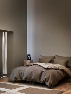 Rauhoittava ja maanläheinen pehmeän ruskea värimaailma – Skandinavian pääkaupungin Oslon mukaan nimetty pussilakanasetti on ajattoman tyylikäs. Kaunis tereviimeistely reunoissa. Toinen puoli vaaleampaa sävyä.