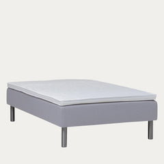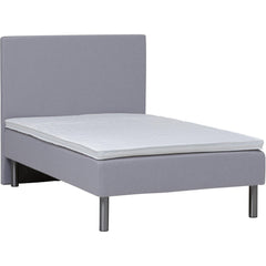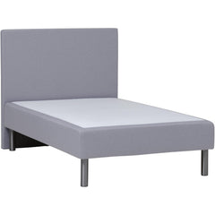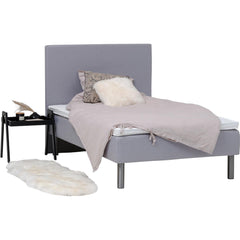 Ajattoman harmaa verhoilu ja sirot metallijalat tuovat makuuhuoneeseen modernia ilmettä. Mukana tuleva petauspatja viimeistelee nukkumismukavuuden ja tekee vuoteesta entistä pehmeämmän sekä helppohoitoisen.