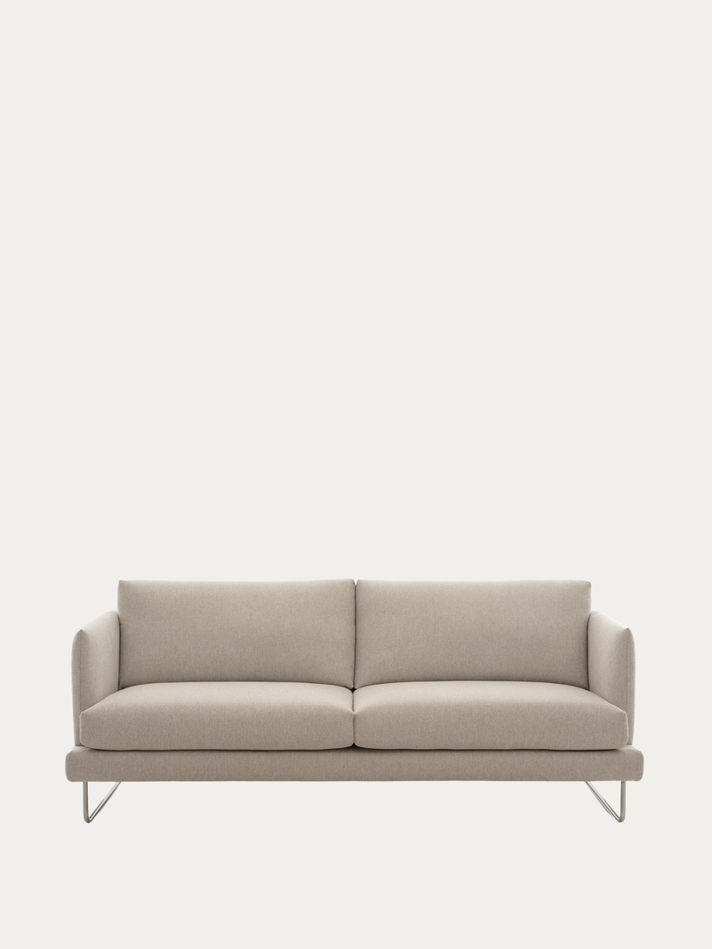 Sohvan selkeälinjainen muotoilu, pehmeät tyynyt ja kevyesti kaartuvat käsinojat luovat modernin mutta kutsuvan ilmeen. Elegantit metallijalat viimeistelevät kokonaisuuden tuoden mukaan ripauksen keveyttä ja ilmavuutta.