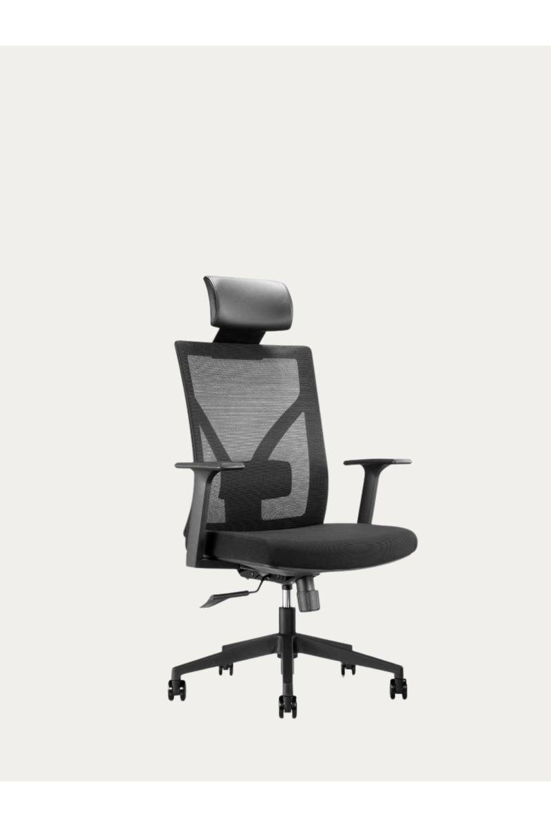 Korkeaselkäisessä työtuolissa on ergonomisesti muotoiltu selkänoja ristiseläntuella, käsinojat ja mukavasti pehmustettu istuin. Selkänoja on hengittävää polyesteri-verkkokangasta.