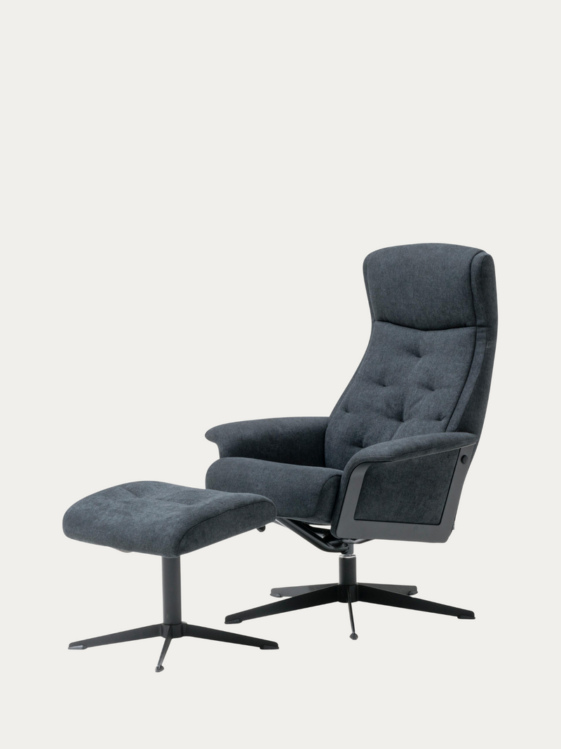 King TV-tuoli ja rahi antrasiitin sävyssä luovat miellyttävän paikan rentoutumiseen. Tuoli on muotoiltu ergonomisesti tarjoten tukea niin selälle kuin käsillekin, ja rahi toimii täydellisenä jalkojen leposijana.