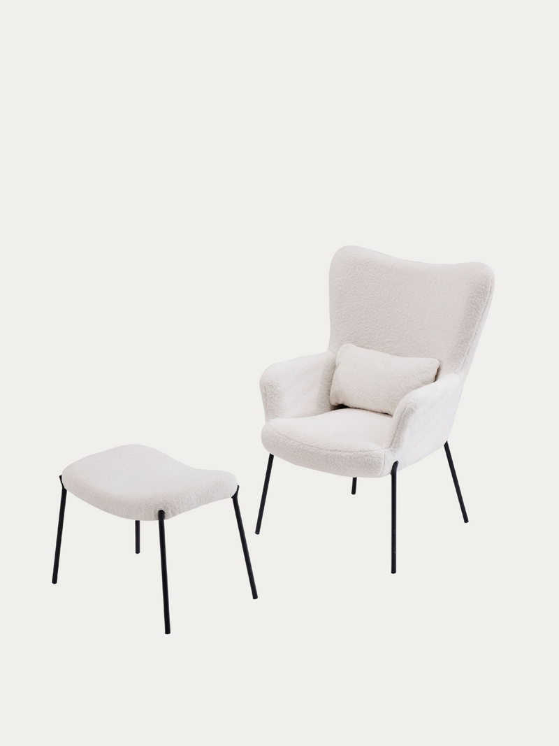 Lago-lepotuoli hurmaa miellyttävällä istuinmukavuudellaan ja modernilla ilmeellään. Sen korkeaselkäinen, kevyesti kaareva muoto tukee täydellisesti istujaa ja kutsuu rentoutumaan. Pehmeä, lampaankarvaa muistuttava verhoilu luo lämpimän ja ylellisen tunnun, joka sopii täydellisesti niin olohuoneeseen kuin makuuhuoneeseenkin.