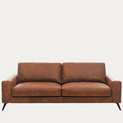 Sohva on kauttaaltaan verhoiltu aidolla semianiliininahalla, joten se patinoituu käytössä tasaisesti joka puolelta.