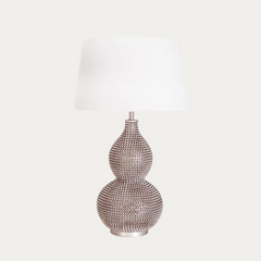 Sessak Lofty pöytävalaisin tuo viihtyisyyttä ja pehmeää valoa mihin tahansa huoneeseen. Valaisimen jalka on koristeltu kauniilla, kohopintaisella kuvioinnilla, joka tuo sille persoonallisen ilmeen.