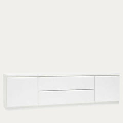 Tämä selkeälinjainen TV-taso tuo olohuoneeseesi raikkaan ja modernin ilmeen. Valkoinen tyylikäs pinta ja piilotetut vetimet luovat rauhallisen kokonaisuuden, jossa käytännöllisyys ja estetiikka yhdistyvät täydellisesti.