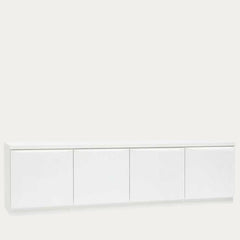 Tämä neljällä ovella varustettu tv-taso on täydellinen valinta sinulle, joka arvostat yksinkertaisuutta, käytännöllisyyttä ja nykyaikaista tyyliä. Kokonaan sileät, vetimettömät ovet luovat rauhallisen ja tyylikkään ilmeen, joka sulautuu harmonisesti osaksi mitä tahansa sisustusta.