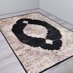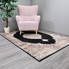 Madelyn-matto on mustavalkoinen, jossa on hillitty kuviointi beigeillä ja punaisilla sävyillä. Saatavana kahdessa eri koossa, joka sopii sekä olohuoneeseen että makuuhuoneeseen.