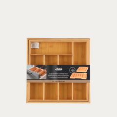 Tyylikäs bambusta valmistettu aterinlaatikko helpottaa järjestelyä. Säädettävä koko sopii useisiin erikokoisiin laatikoihin. Säädettävissä min. 36 cm, maksimi 60 cm. Käsinpesu.
